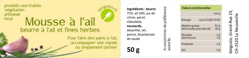 | Composition | Absinthe, Ail, Beurre, Bicarbonate de soude, Ciboulette, Jus de citron, Moutarde, Persil, Poivre, Sel |